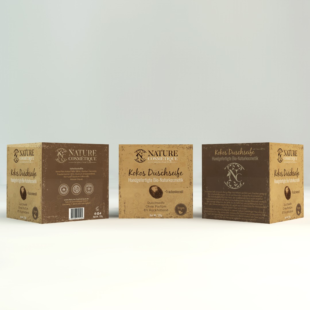 Nature Cosmetique GmbH required a modernized packaging design for their handmade natural soap that reflects the brand’s commitment to organic and preservative-free cosmetics while maintaining its artisanal character.