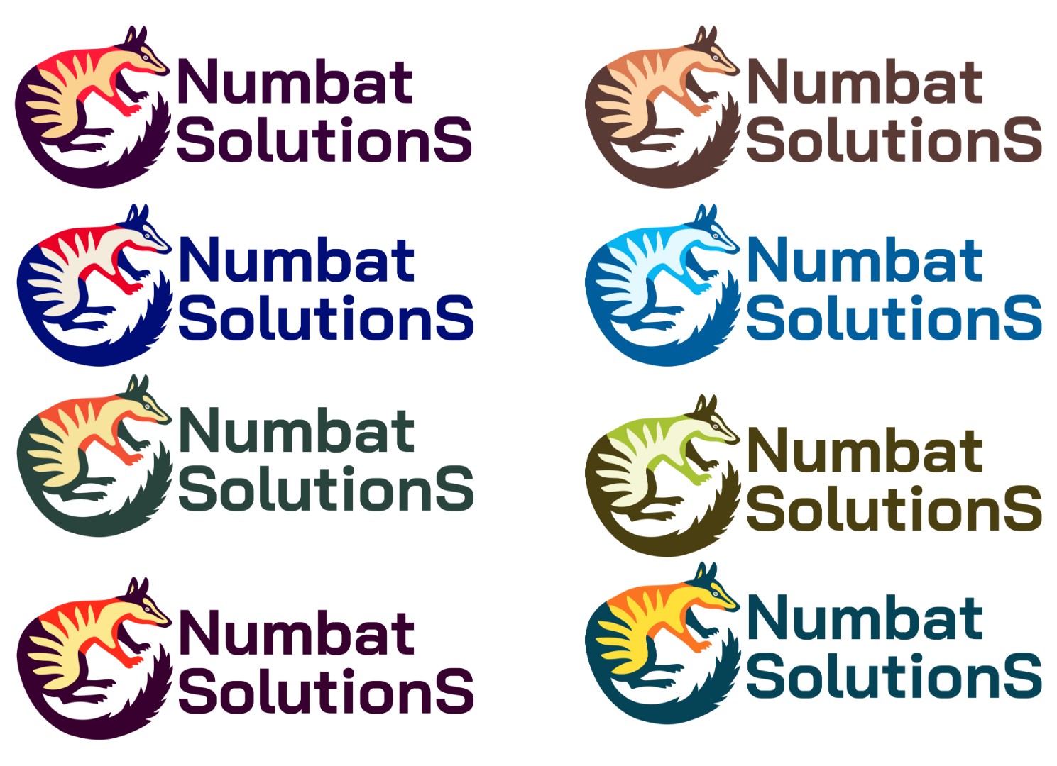 Logo design for Numbat Solutions with multiple concepts and final selection.