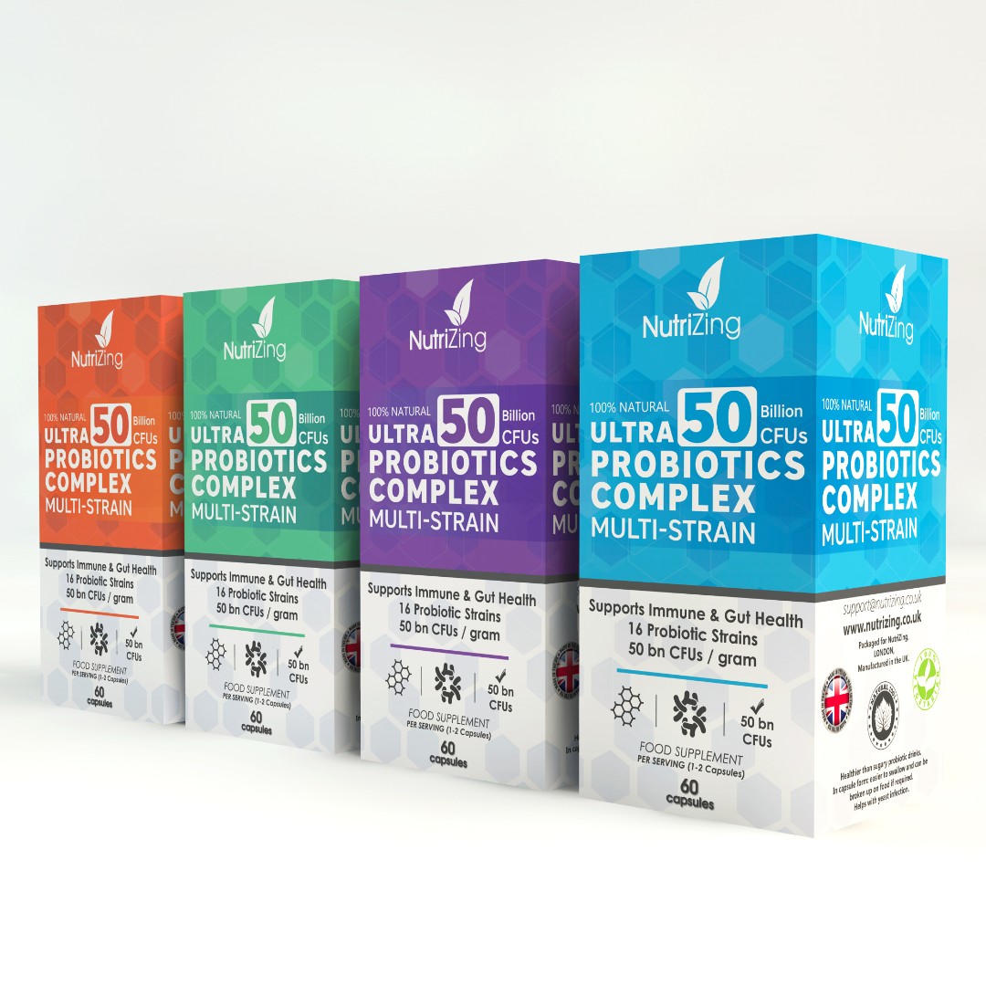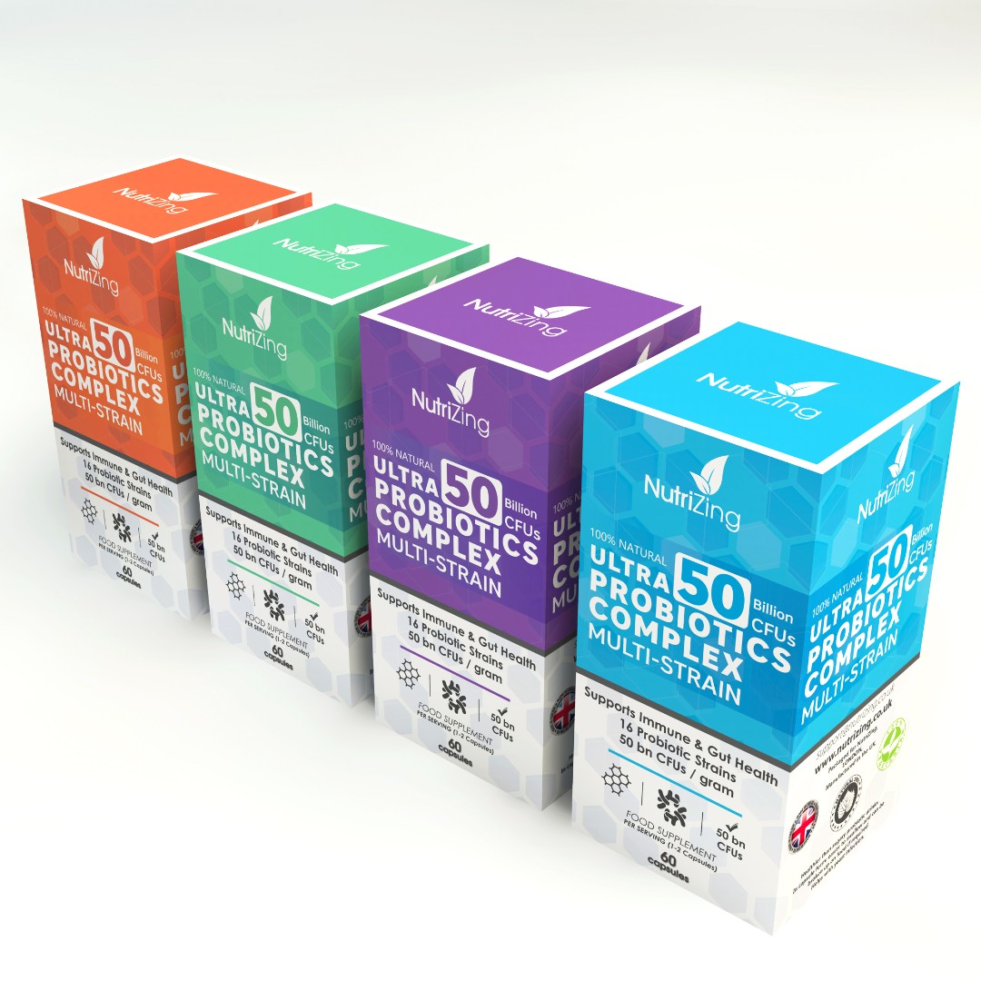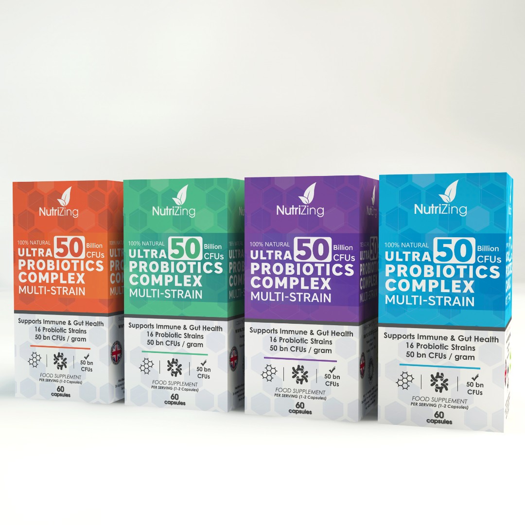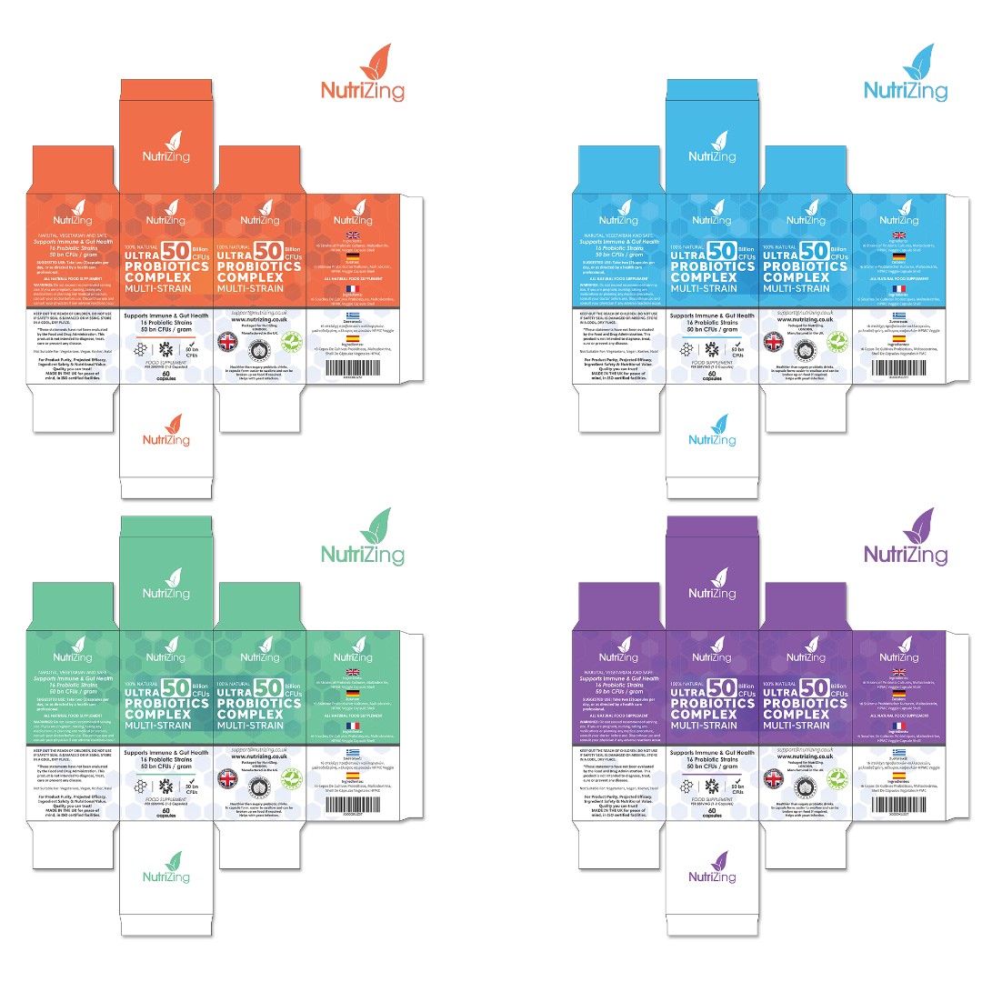 The NutriZing Ultra Probiotics Complex required a packaging design that is both visually engaging and adaptable across future supplement variations.