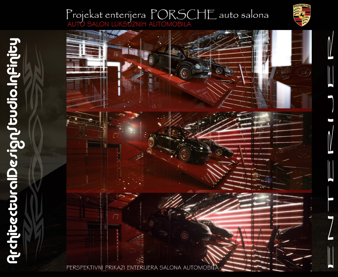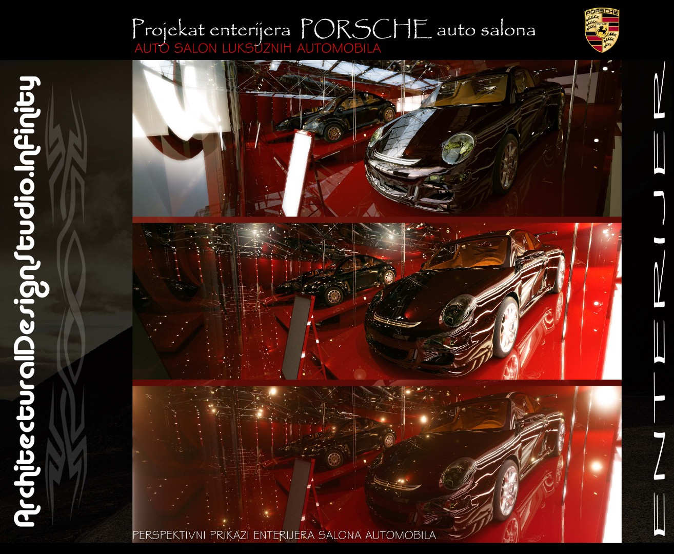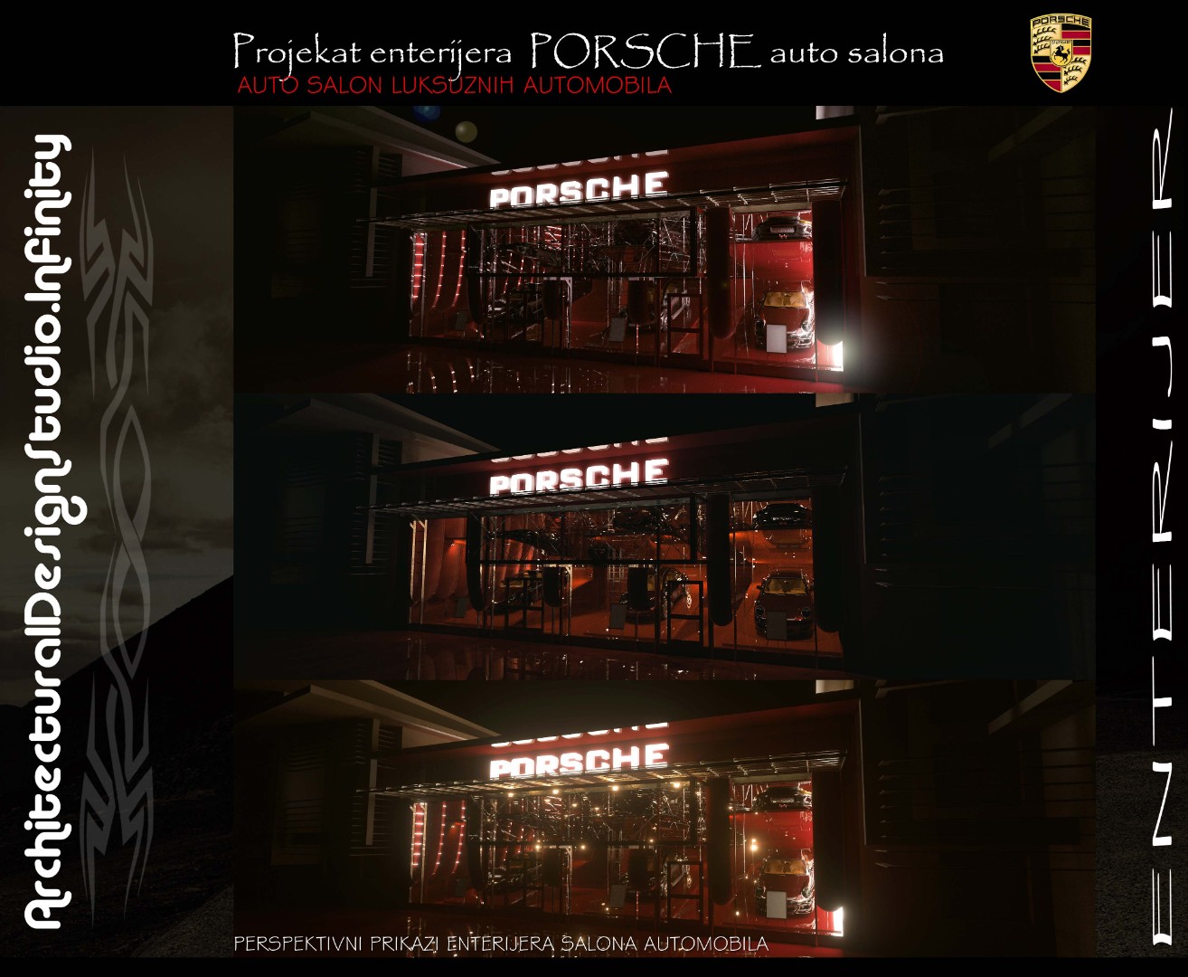 Installed a bold Porsche logotype on a contrasting black panel to reinforce brand presence