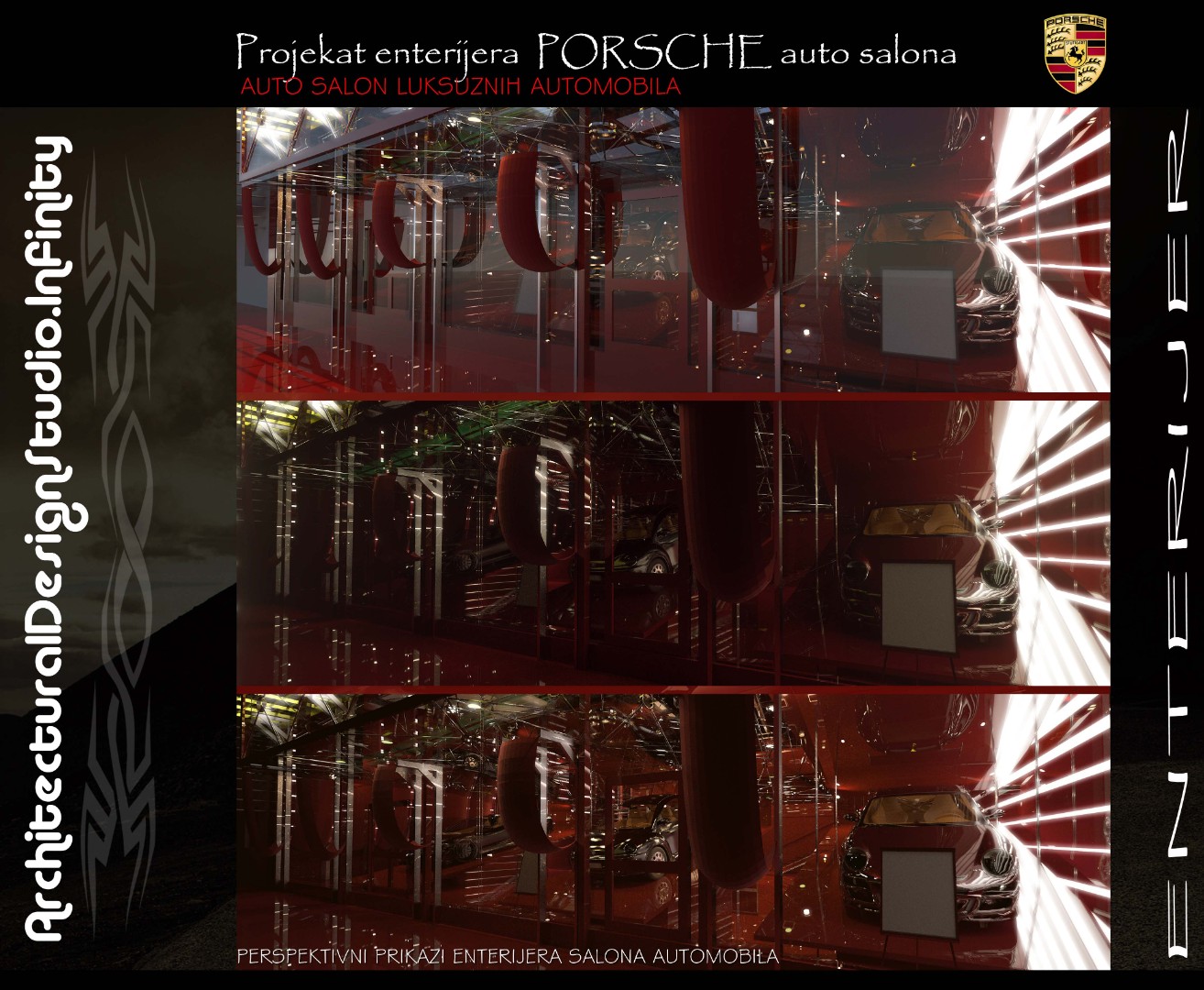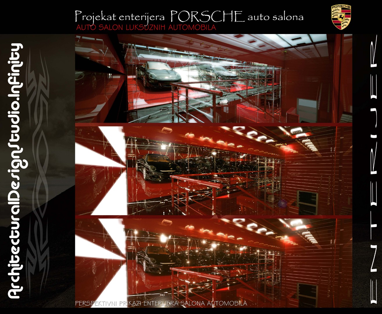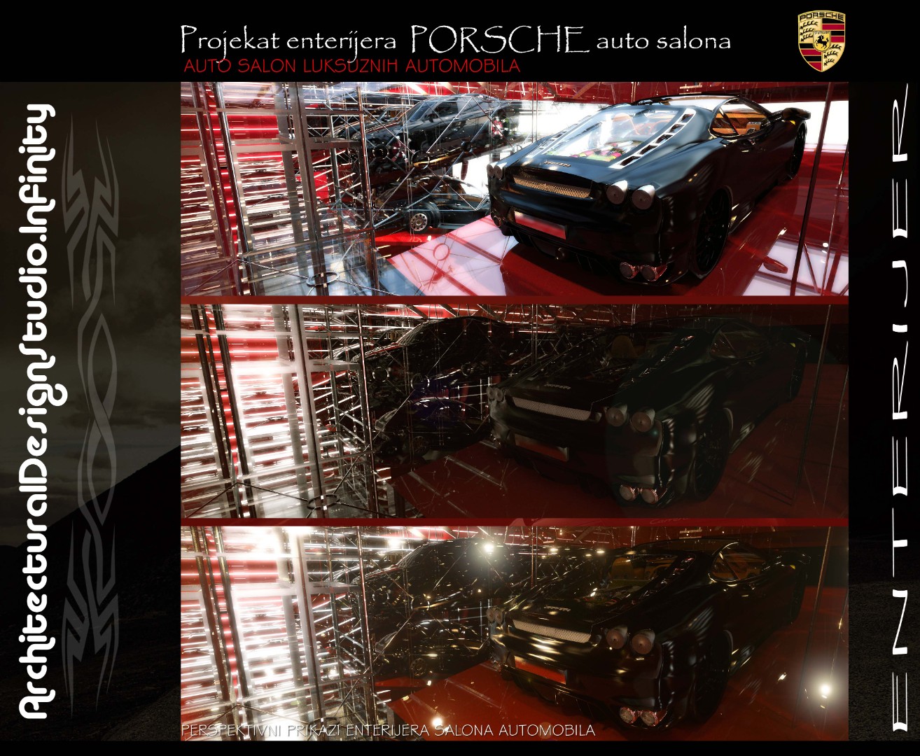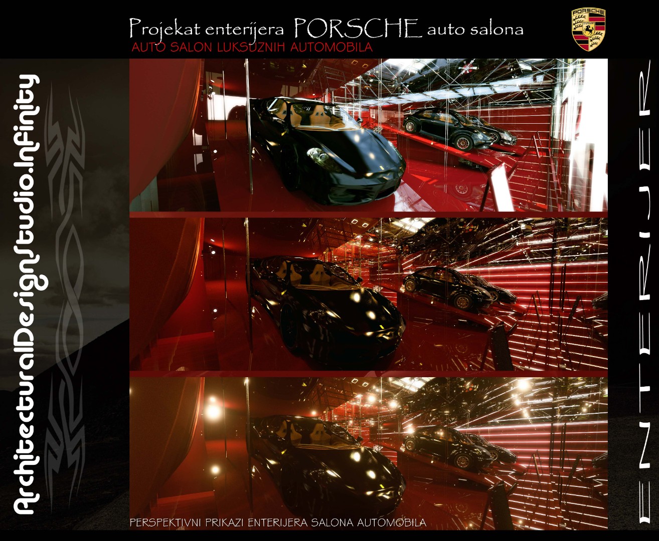 Installed a bold Porsche logotype on a contrasting black panel to reinforce brand presence
