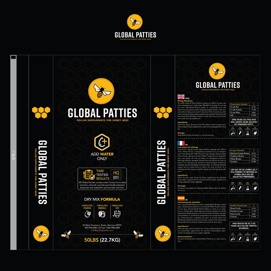 Global Patties required packaging for their new pollen supplement for honey bees that would appeal directly to beekeepers while meeting international distribution requirements.