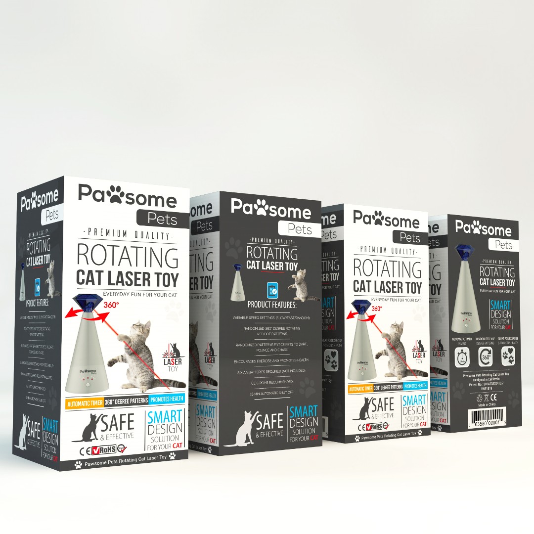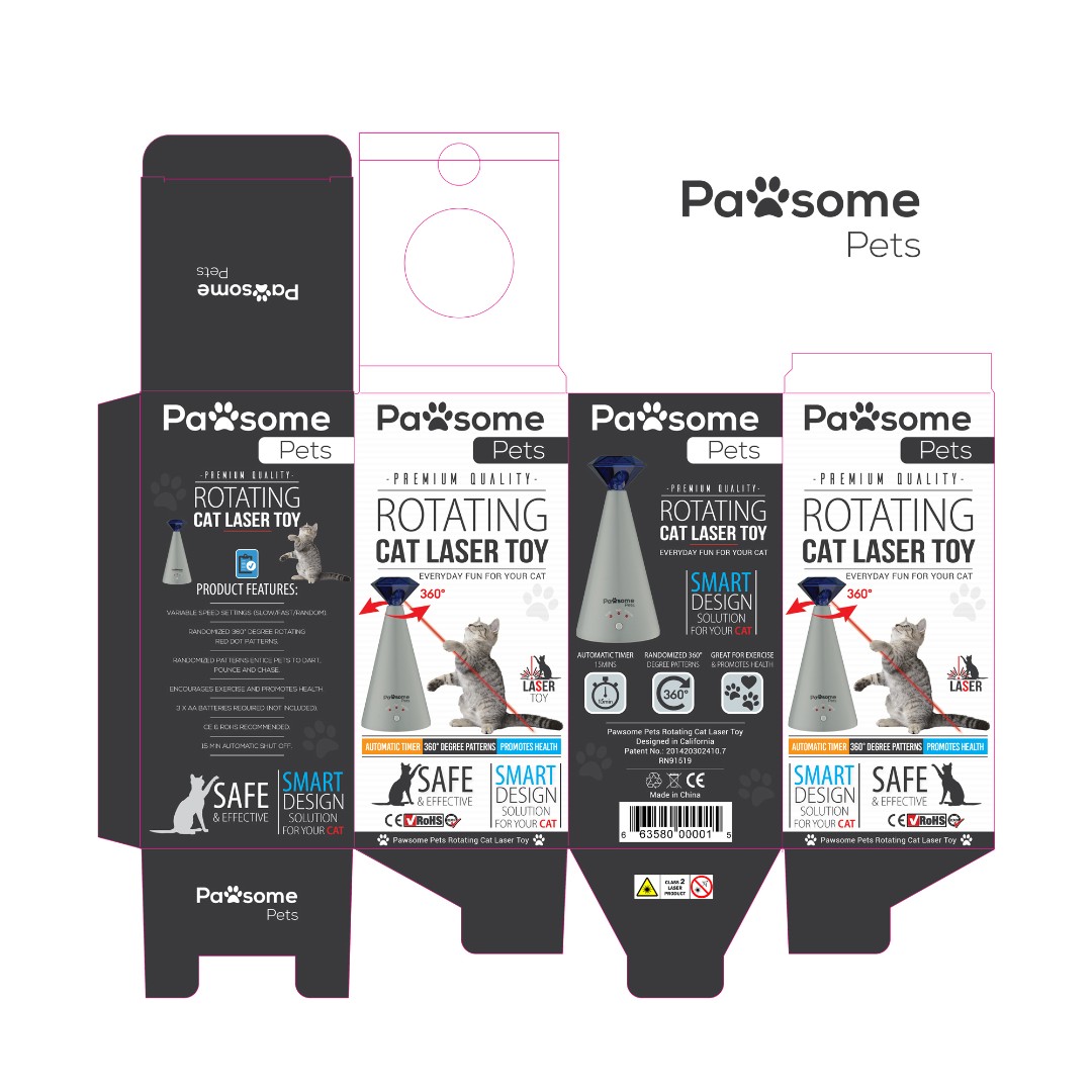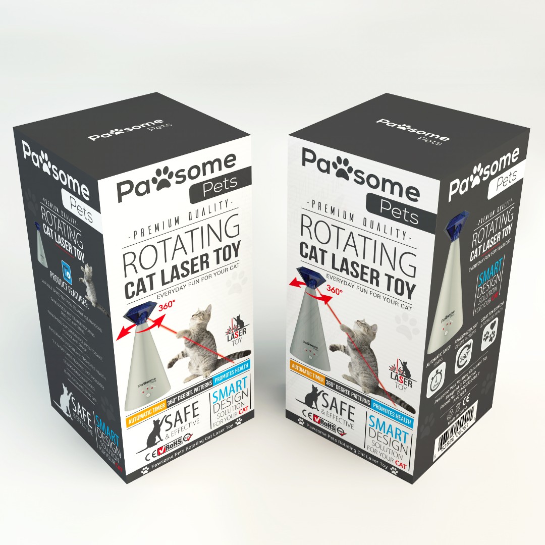 Pawsome Pets required an engaging and modern packaging design for their Rotating Cat Laser Toy that clearly communicates product functionality while standing out in both retail and online environments.