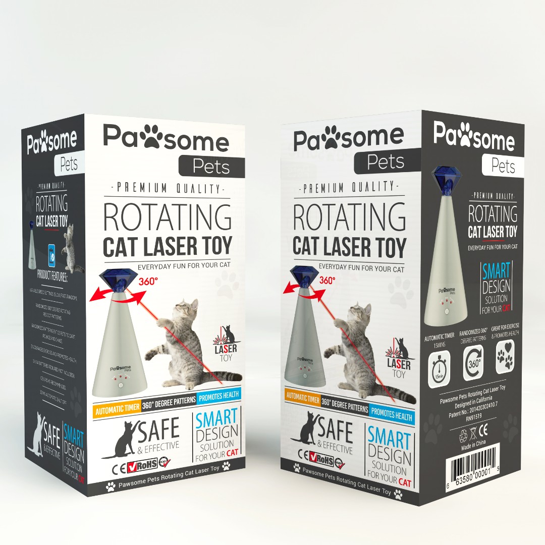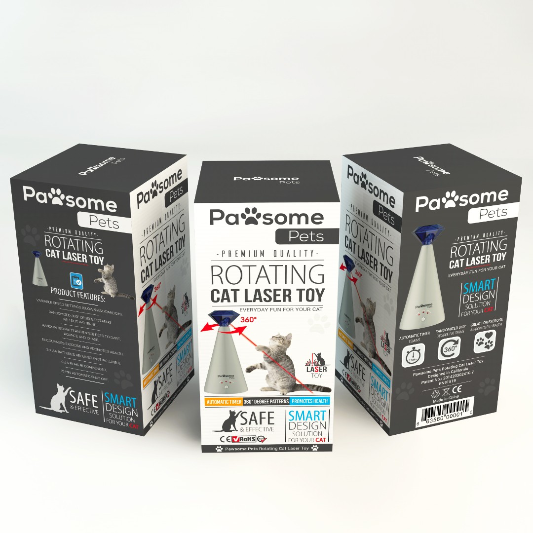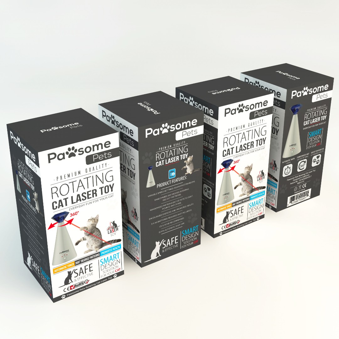 Pawsome Pets required an engaging and modern packaging design for their Rotating Cat Laser Toy that clearly communicates product functionality while standing out in both retail and online environments.