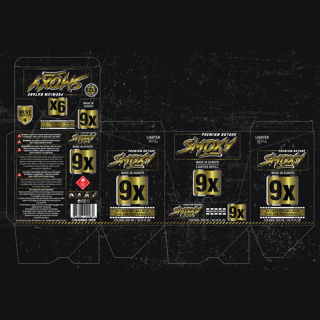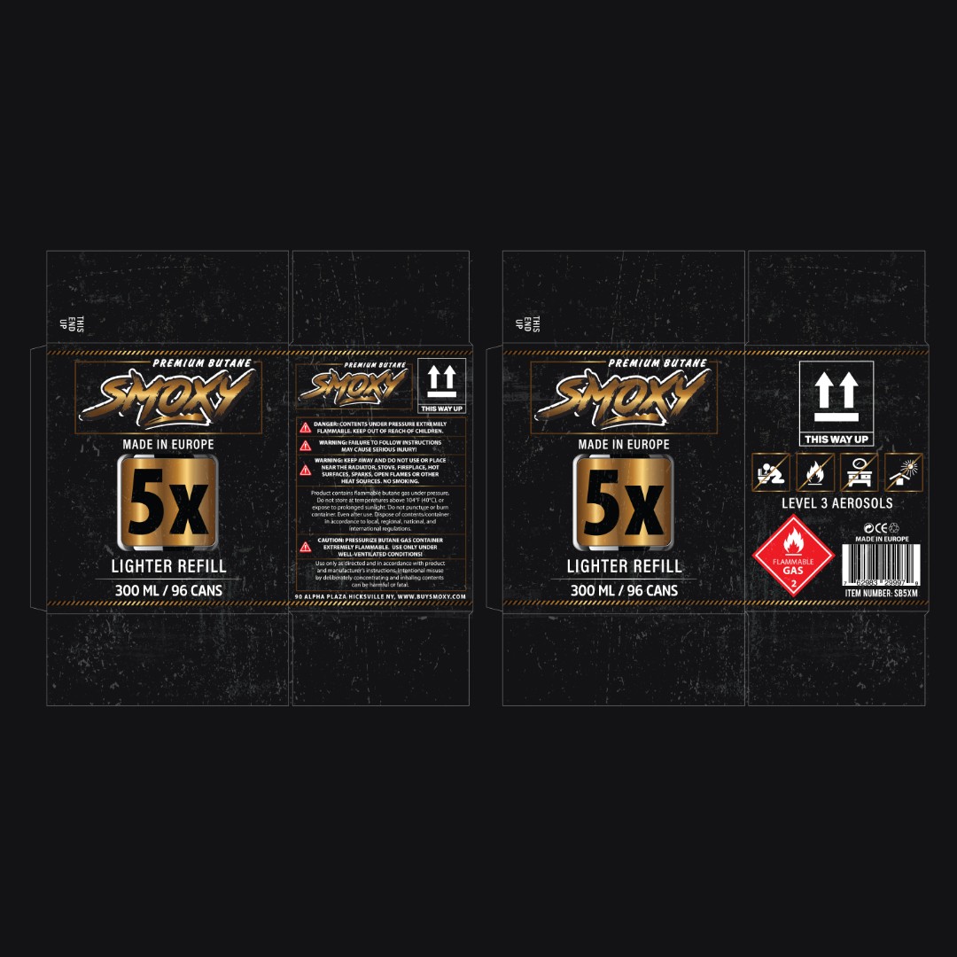 Design distinctive labels for Smoxy Butane 5X and 9X 300ml variants