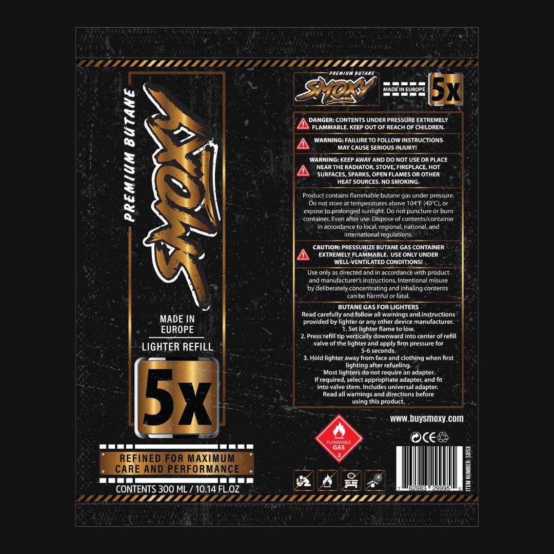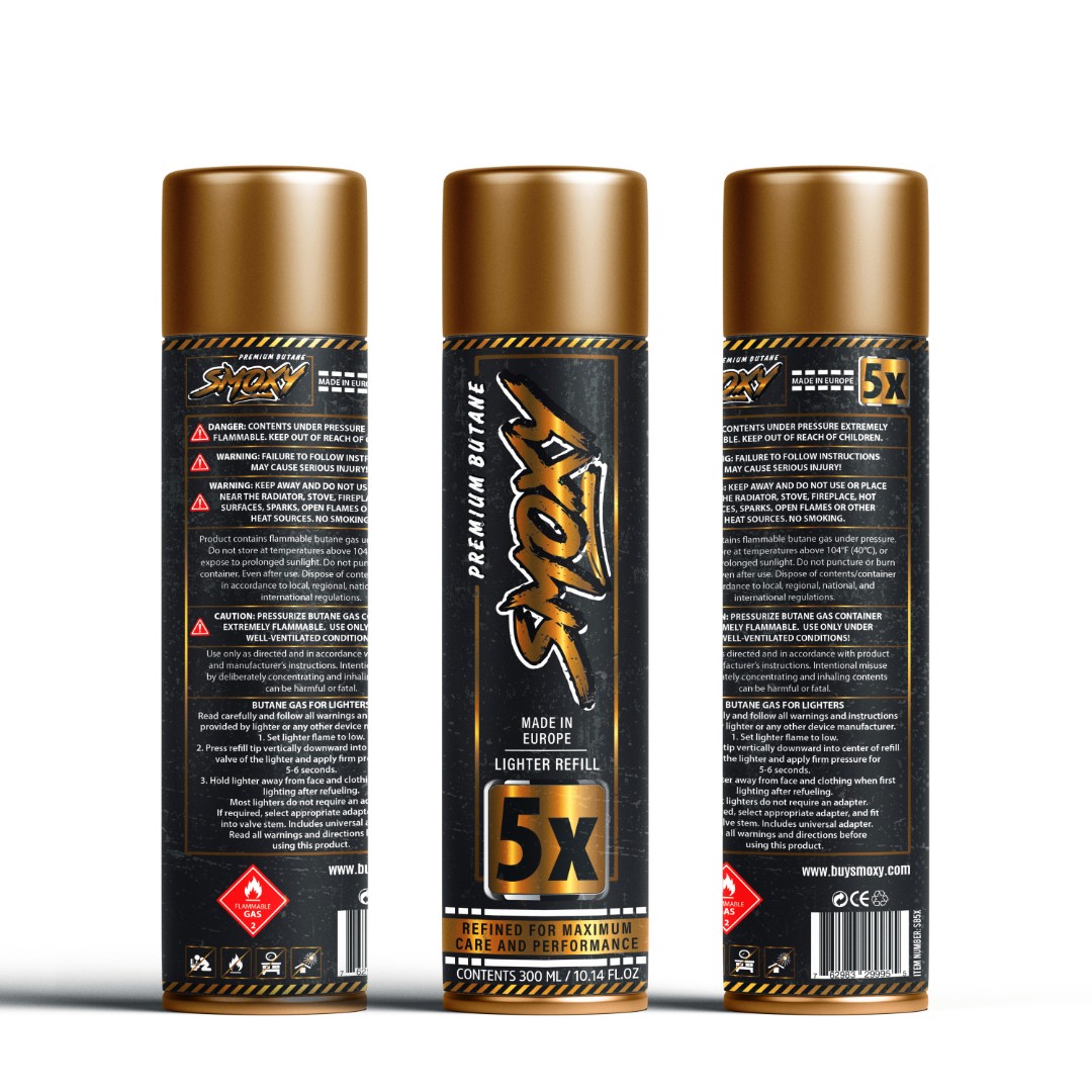 Bronze-accented label for Smoxy Butane 5X variant