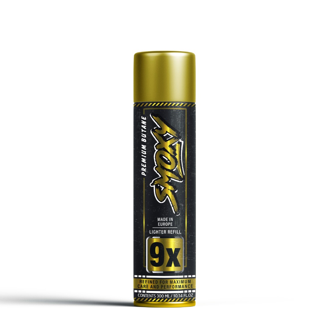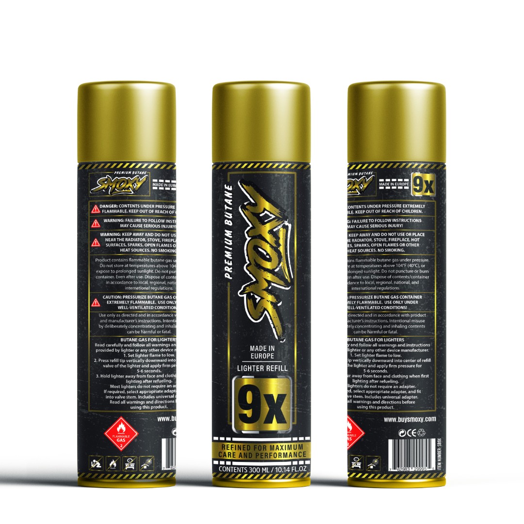 Gold-accented label for Smoxy Butane 9X ultra-pure variant