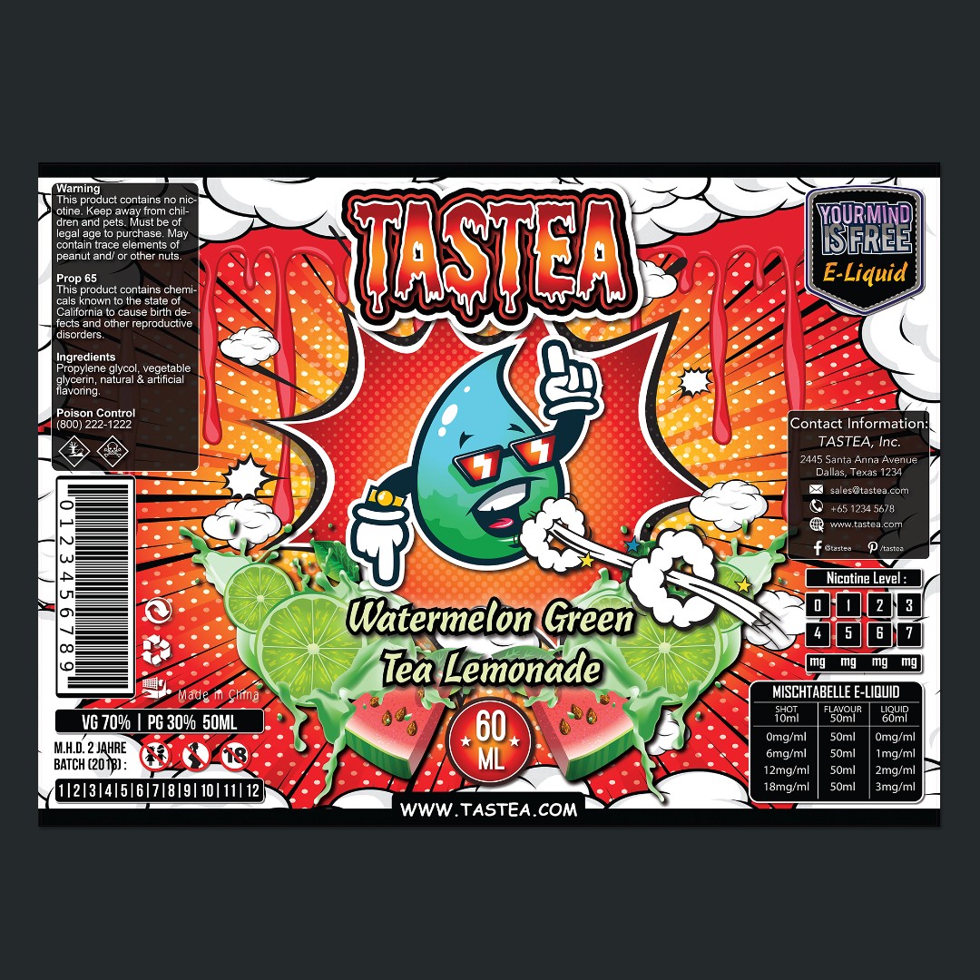 TasTea aimed to launch a vibrant and visually engaging label for their new E-Liquid line that instantly communicates beverage-inspired flavor profiles while maintaining strong brand identity.