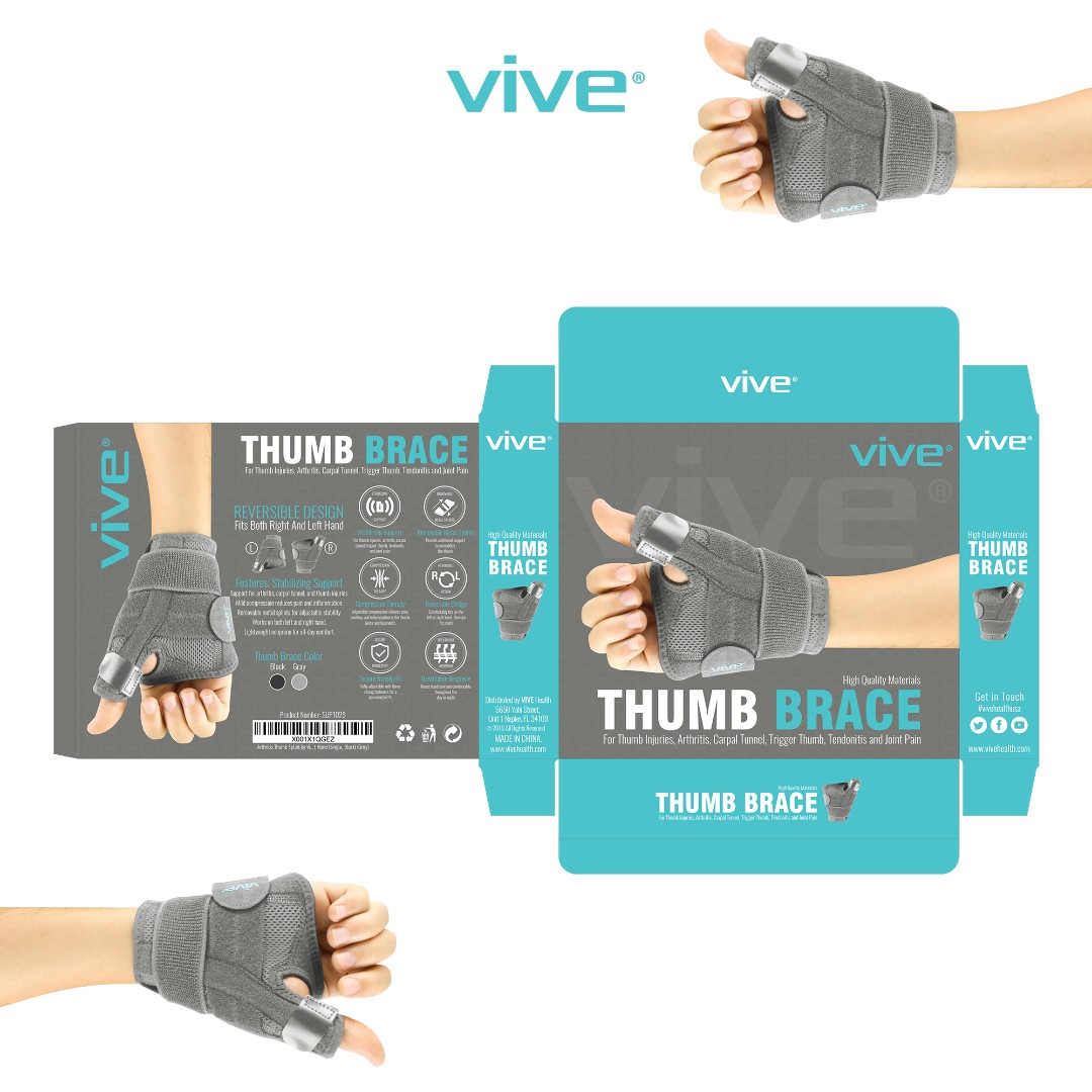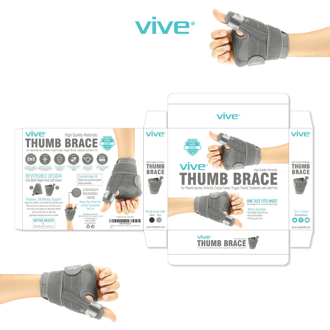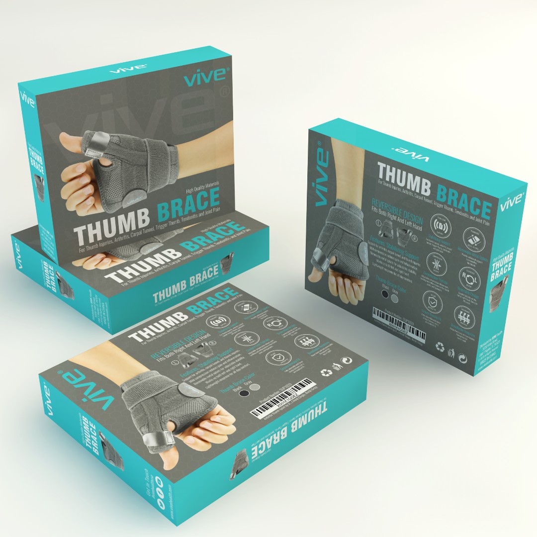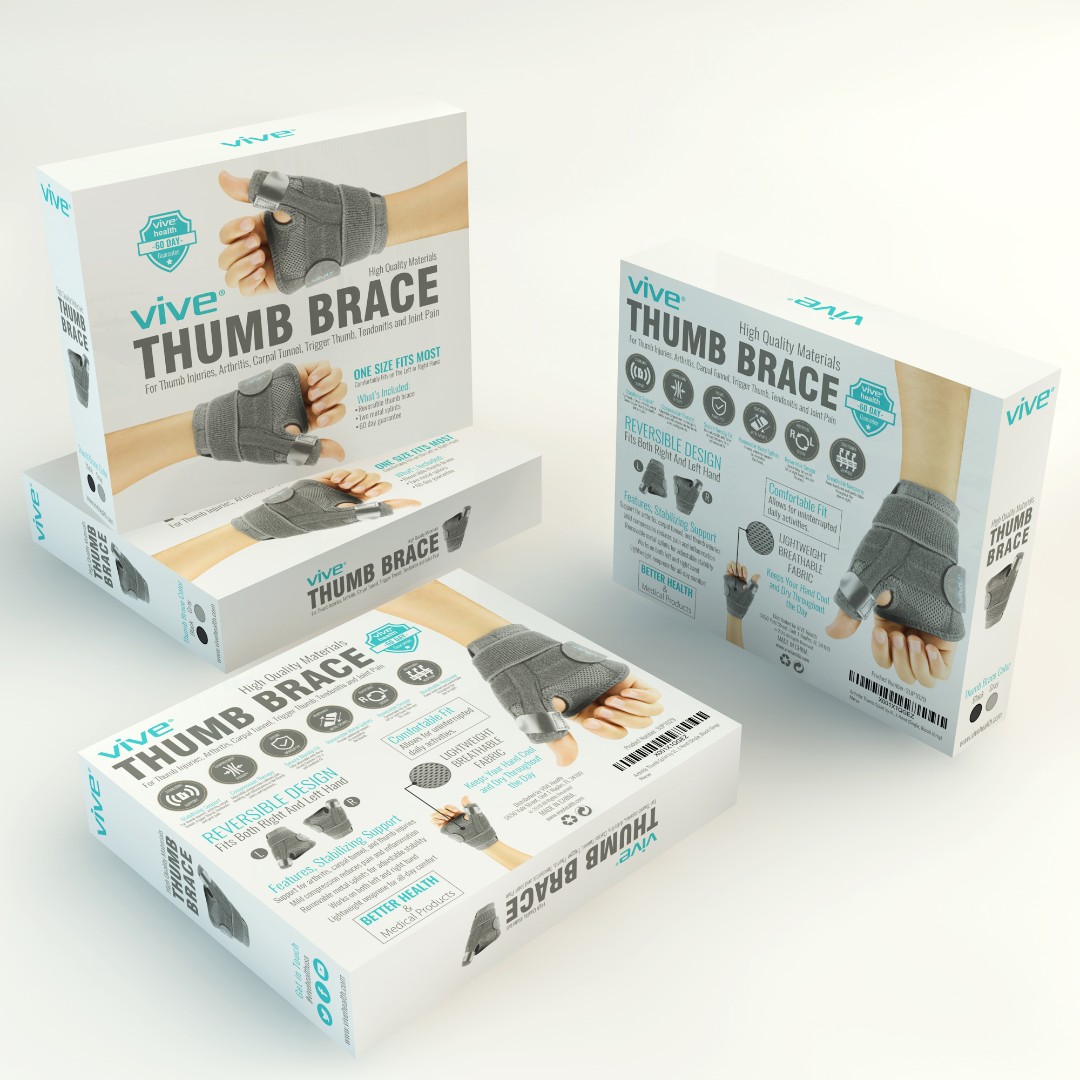 Vive Health needed two versatile packaging concepts for their Thumb Brace that enhance brand trust while aligning with their active physical therapy product line.