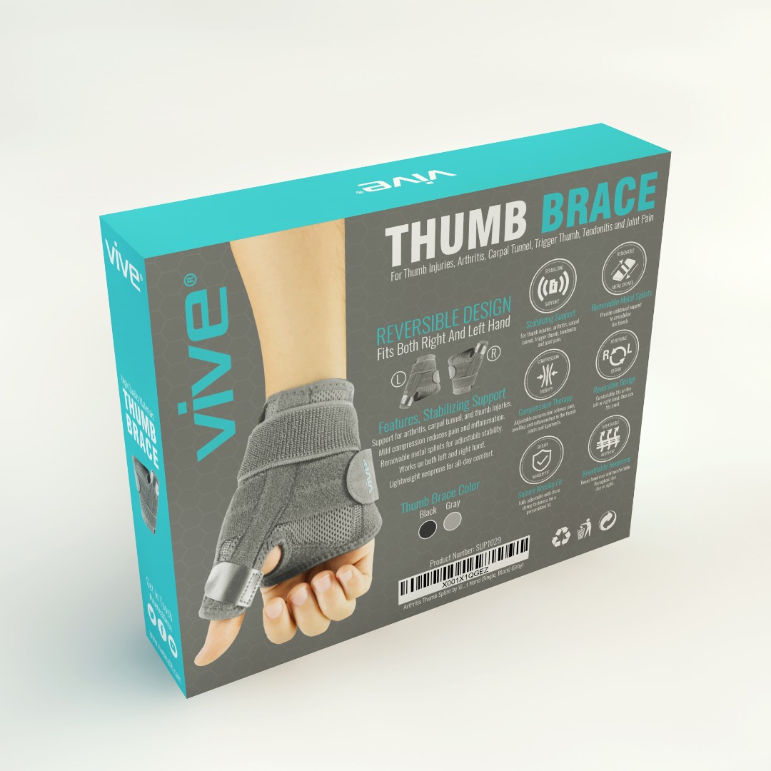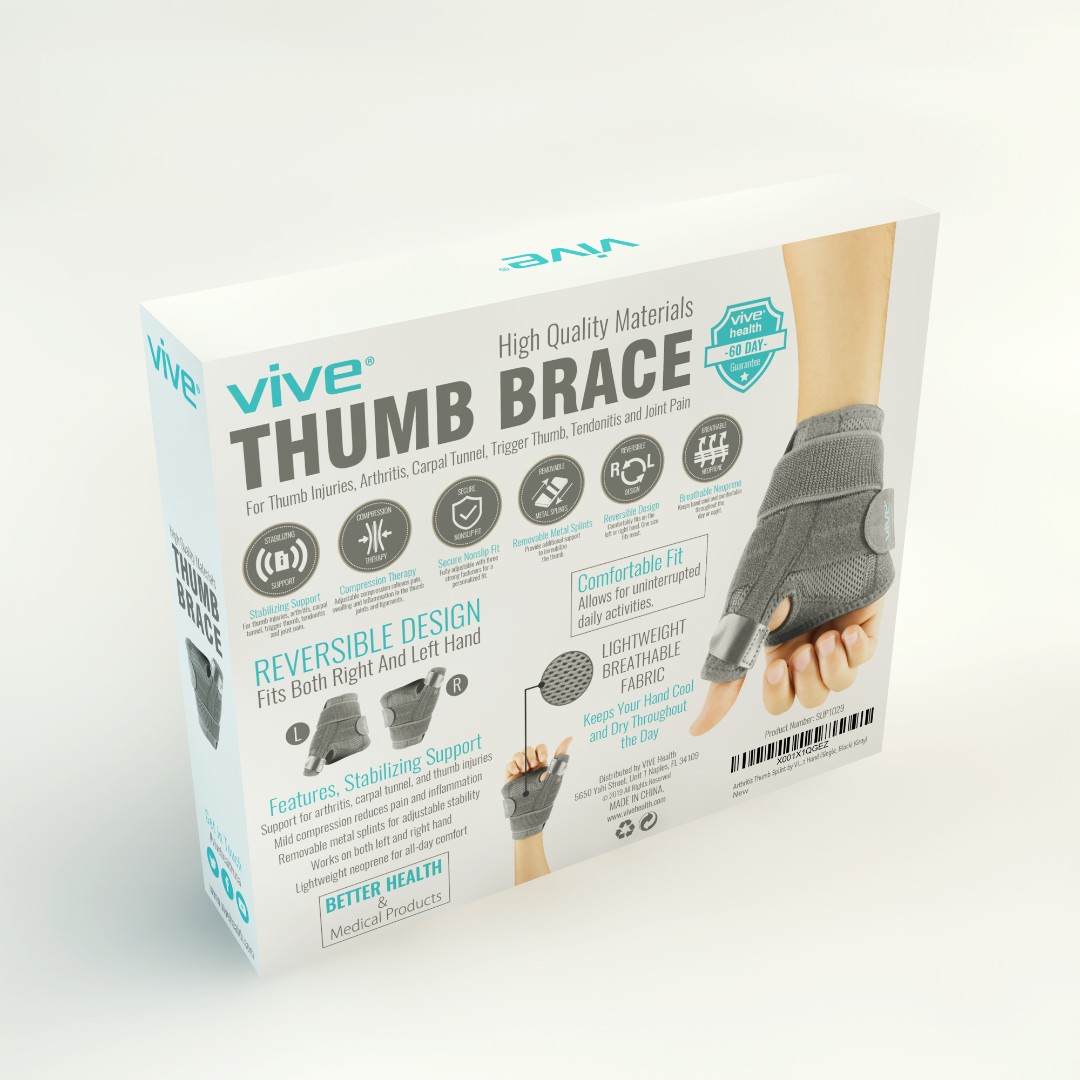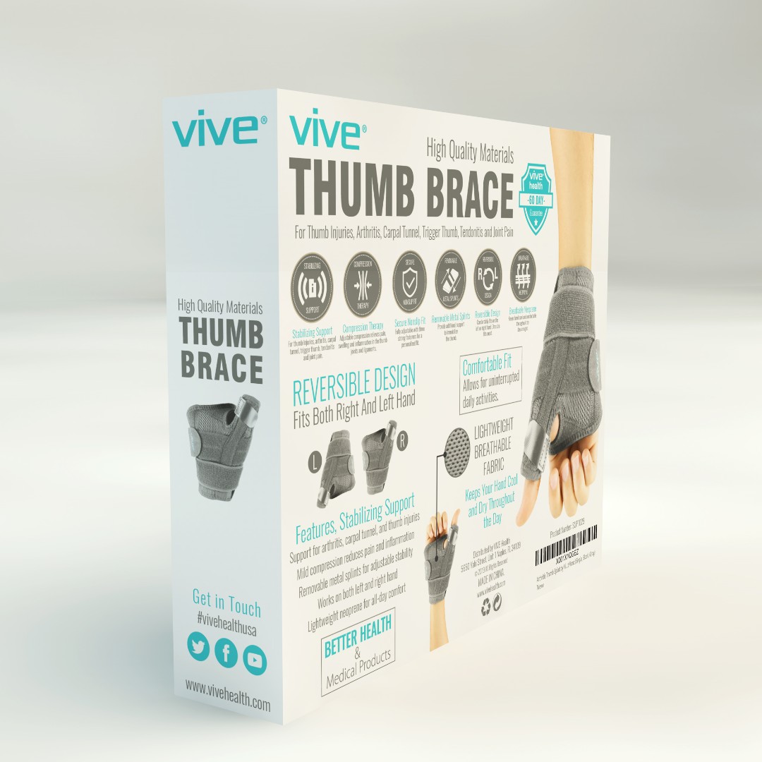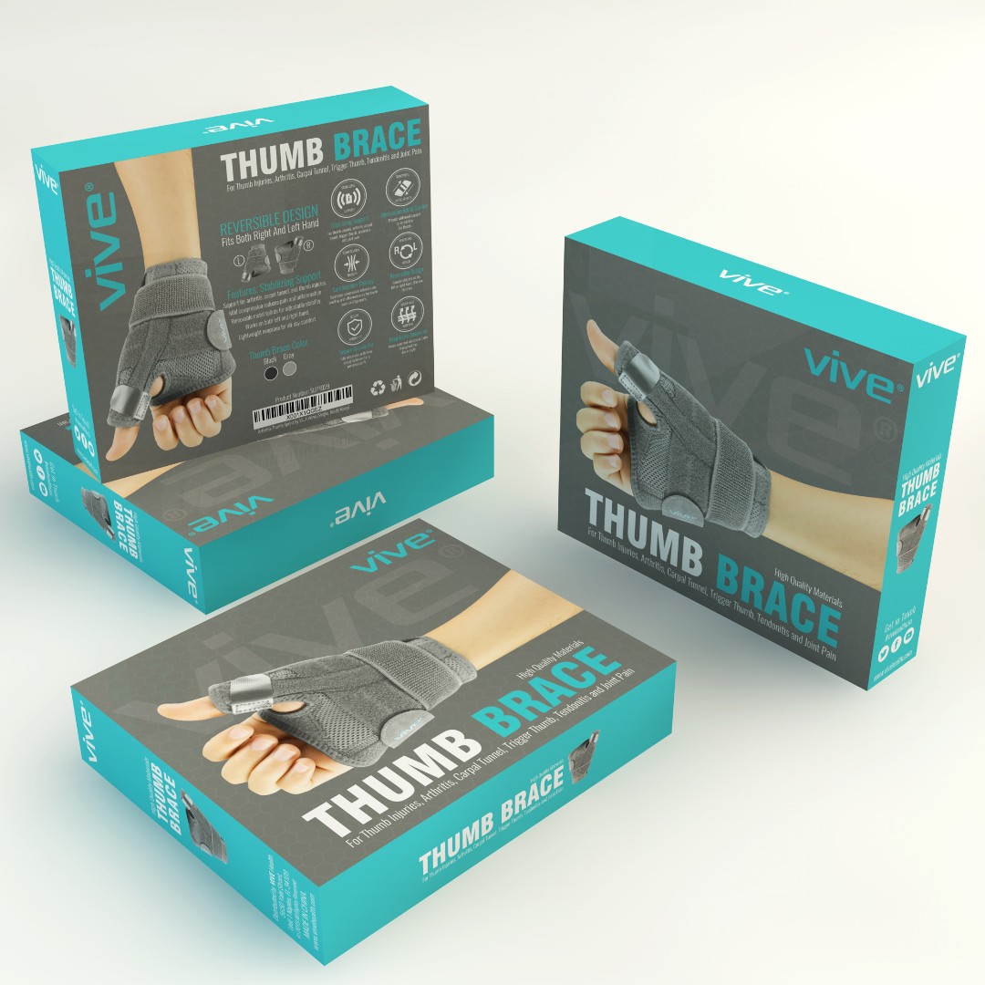 Vive Health needed two versatile packaging concepts for their Thumb Brace that enhance brand trust while aligning with their active physical therapy product line.