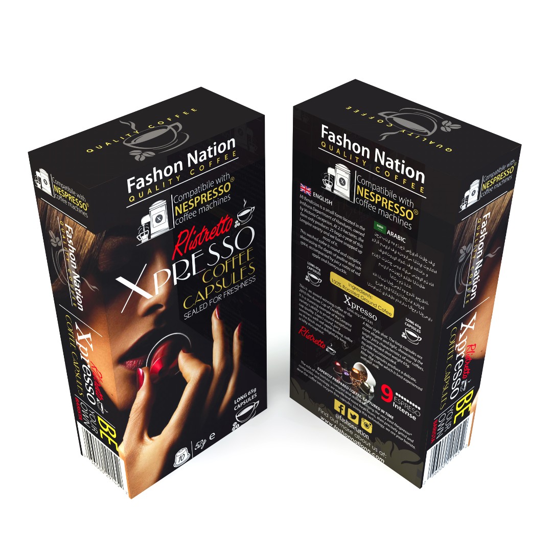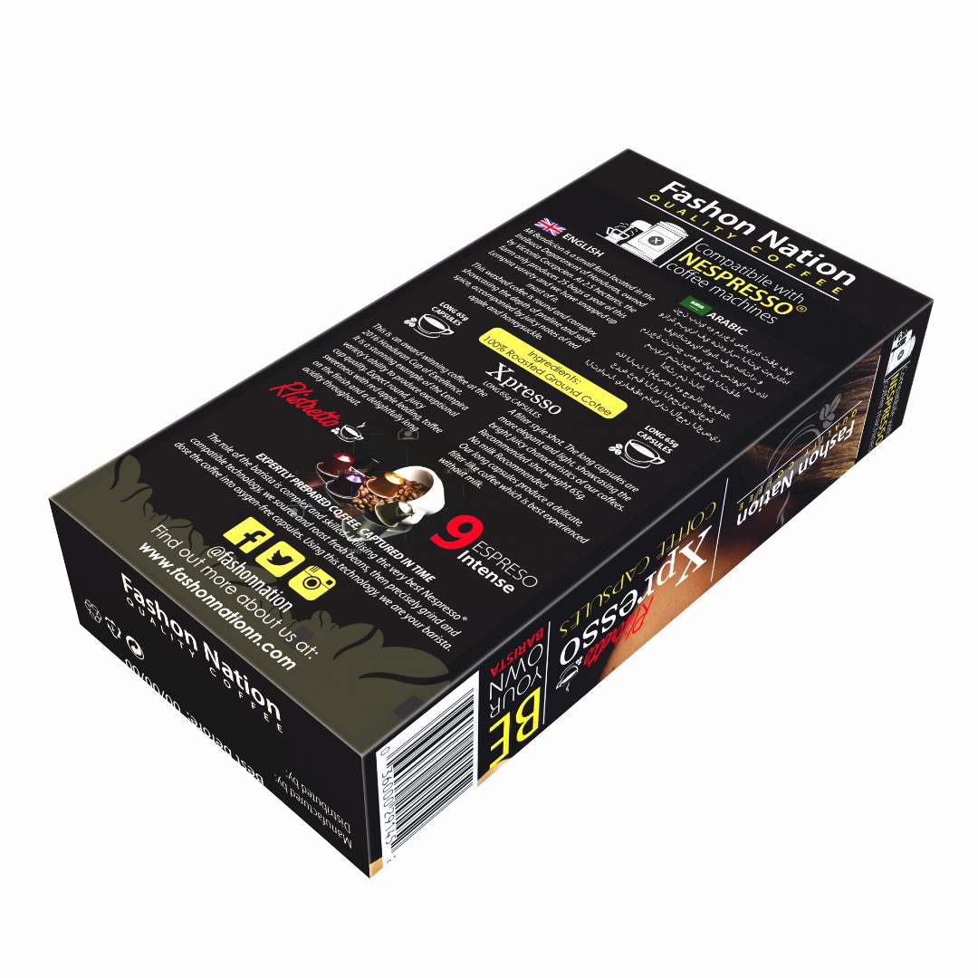 The Xpresso Coffee Capsules required a packaging design that conveys a premium and modern aesthetic while ensuring clear compatibility messaging with Nespresso® coffee machines.