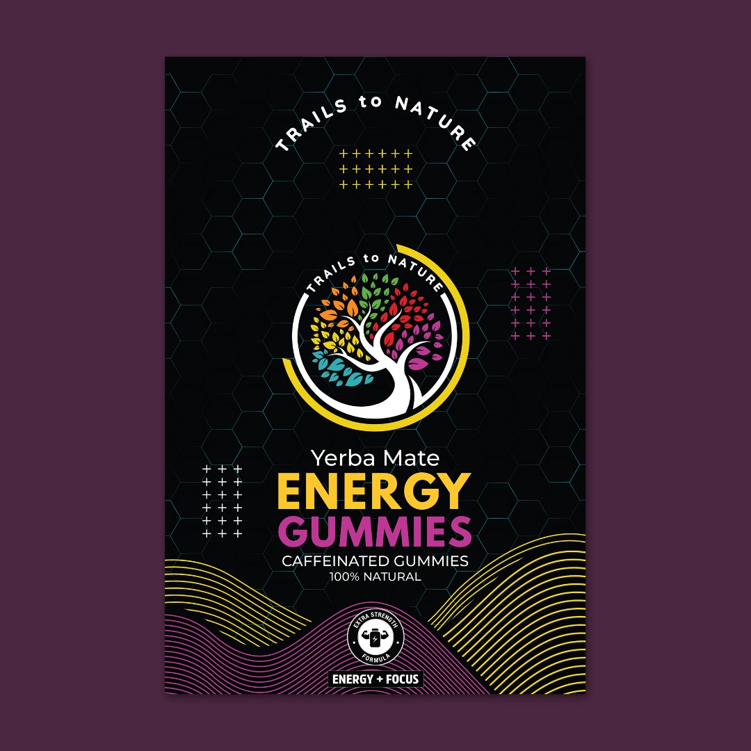 The Yerba Mate Energy Gummies required a packaging design that communicates dynamic energy while appealing to a broad audience including athletes, students, and health-conscious consumers.