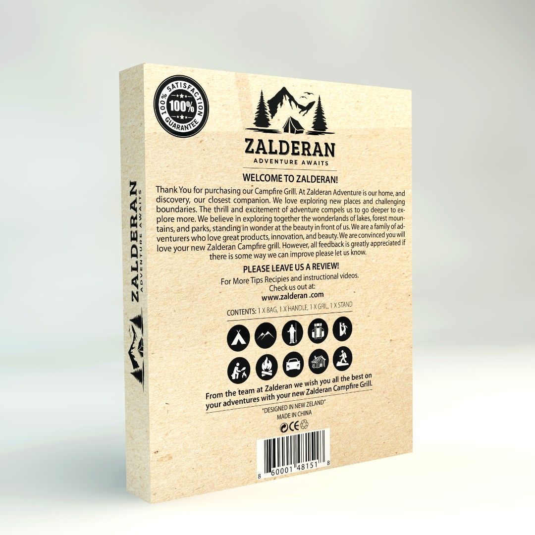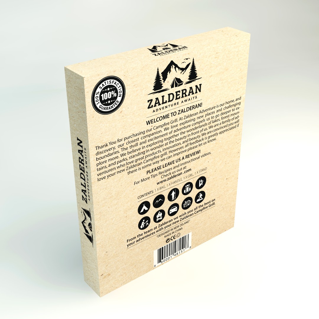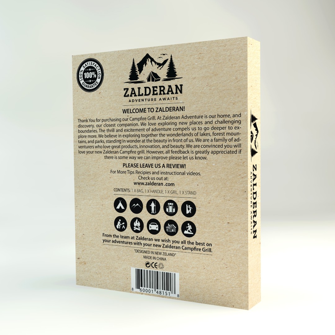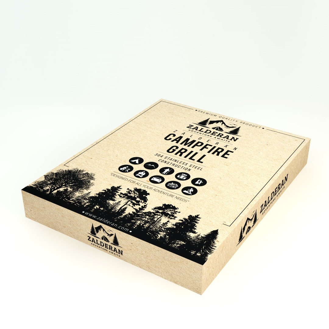 The Zalderan Campfire Grill required a complete branding, packaging, and visual presentation strategy to position the foldable and detachable stainless steel grill as a premium outdoor product.