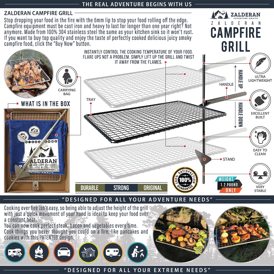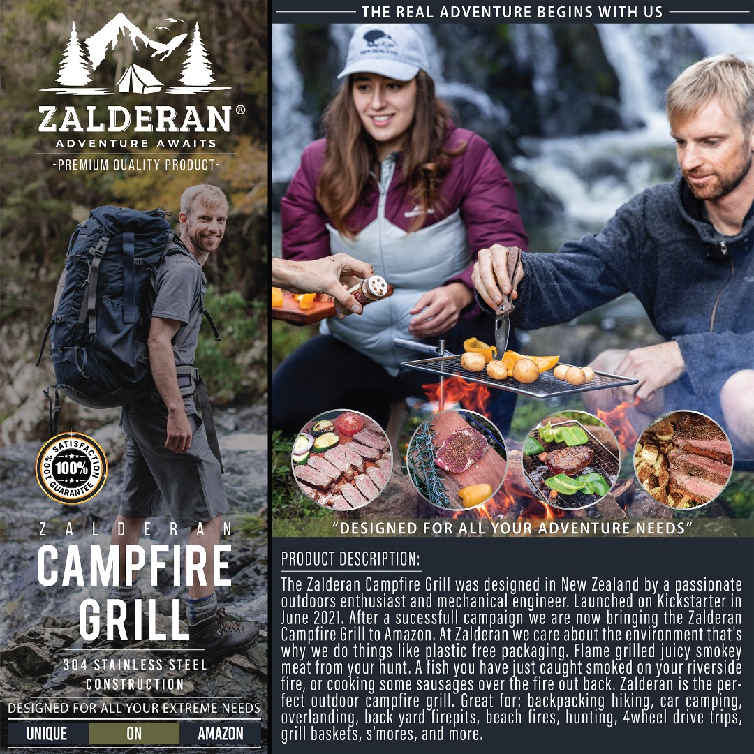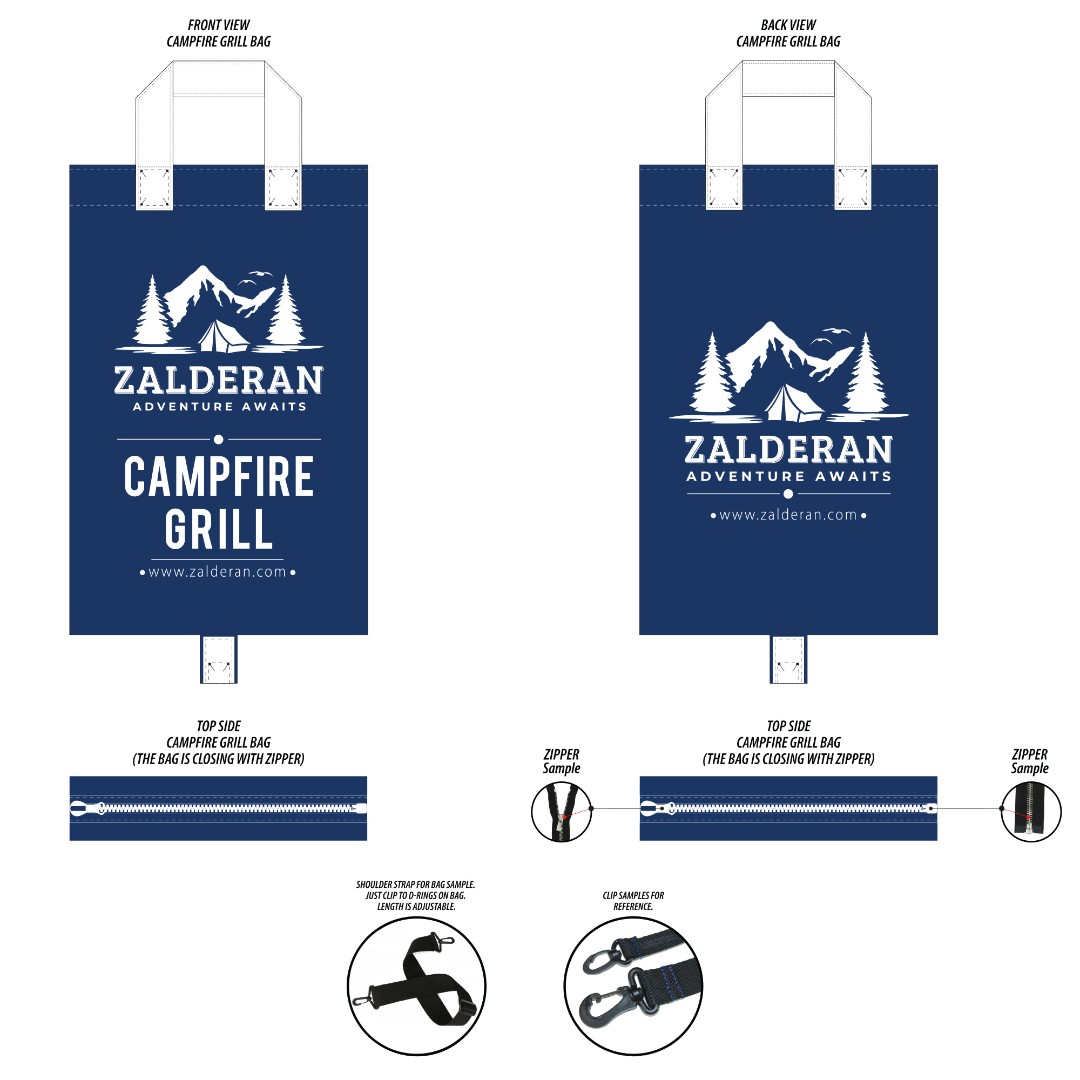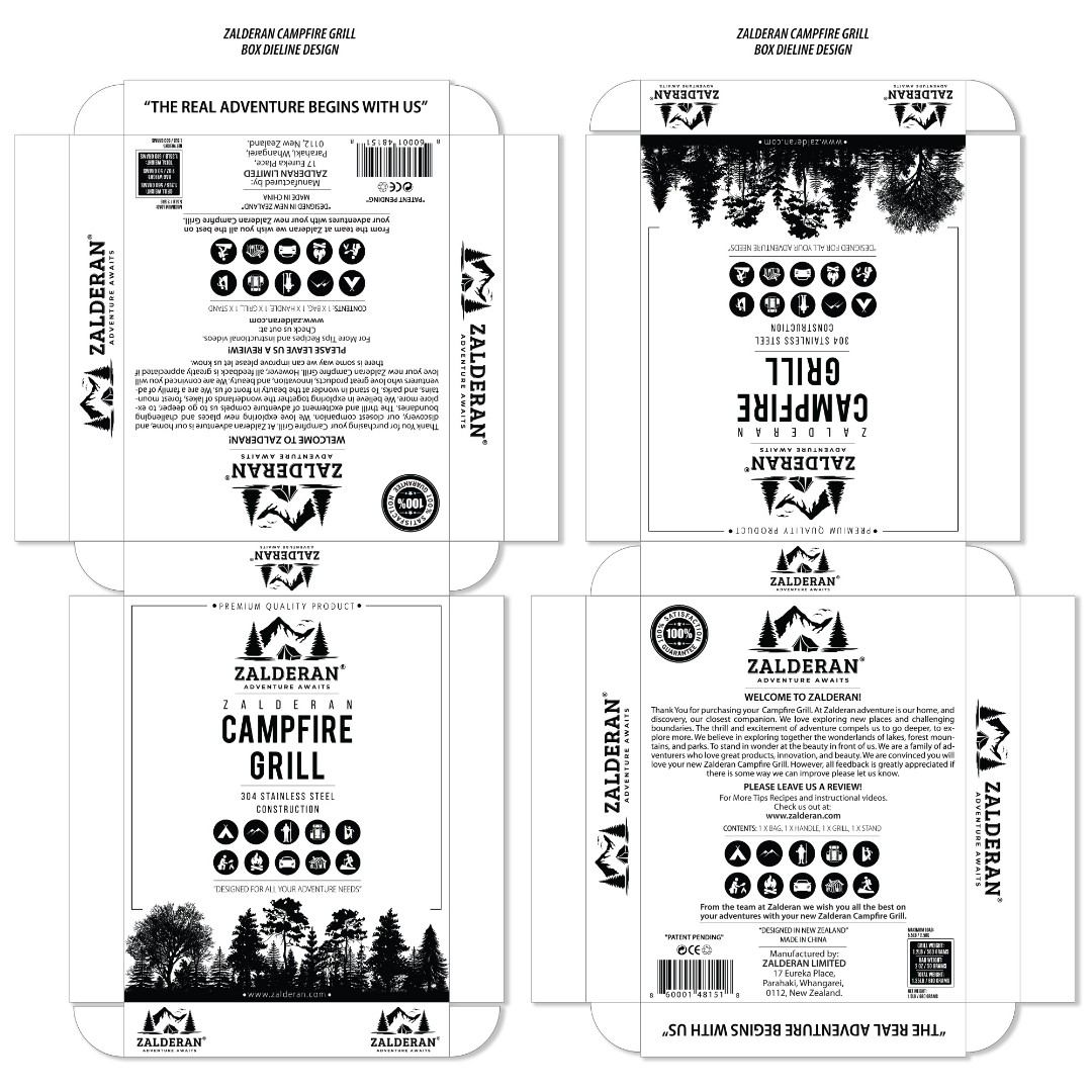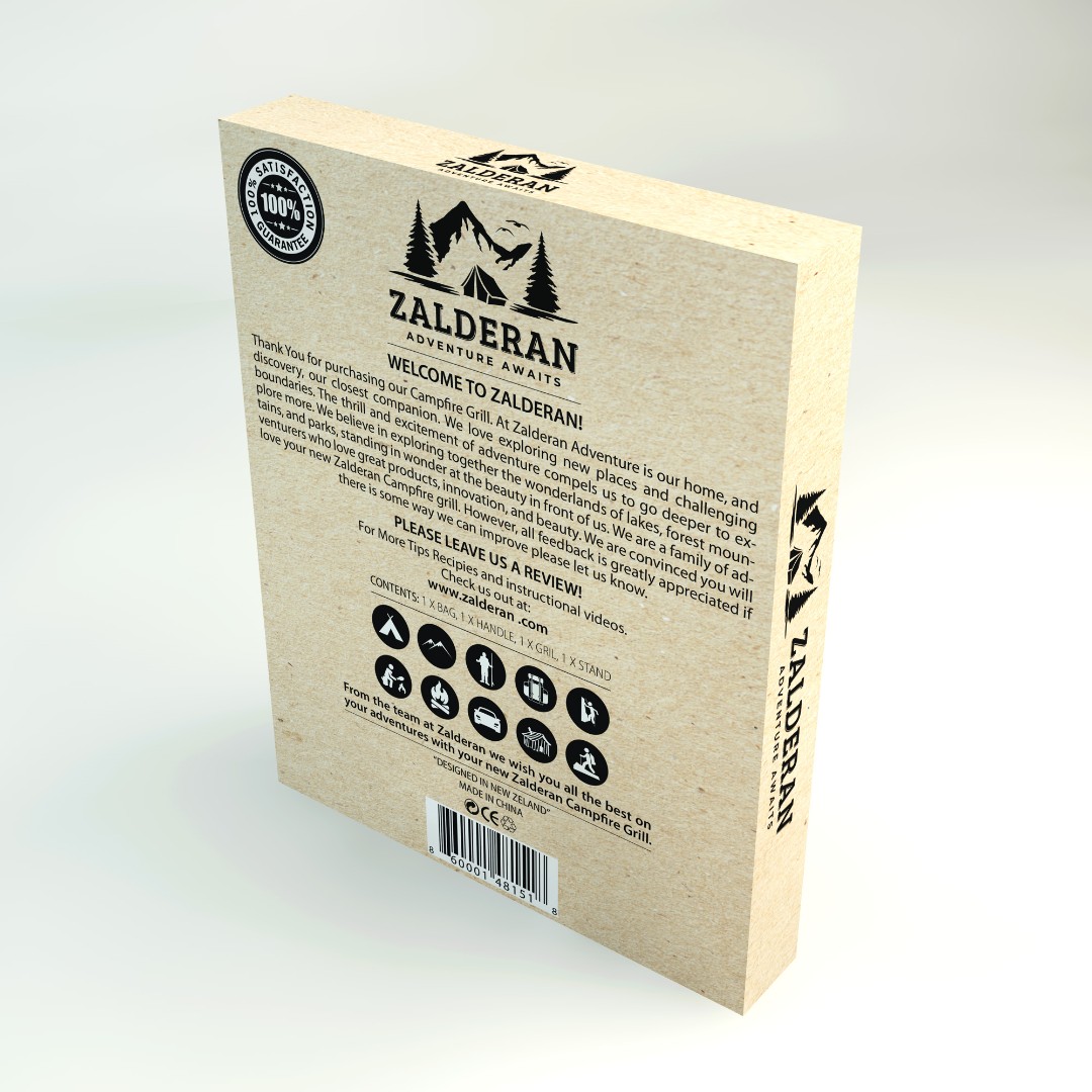 The Zalderan Campfire Grill required a complete branding, packaging, and visual presentation strategy to position the foldable and detachable stainless steel grill as a premium outdoor product.